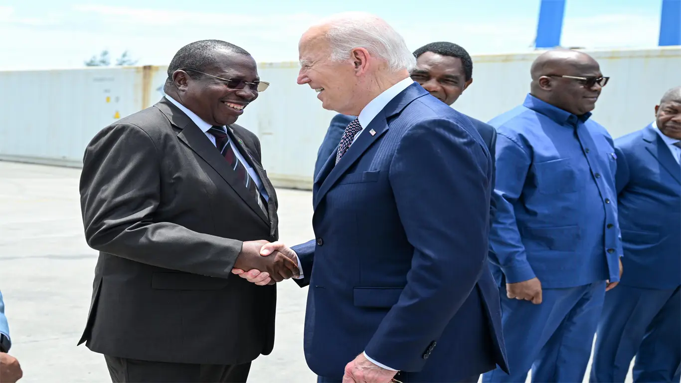Makamu wa Rais wa Jamhuri ya Muungano wa Tanzania Mhe. Dkt. Philip Mpango akizungumza jambo na Rais wa Marekani Mhe. Joe Biden kabla ya kuanza kwa Mkutano wa Wakuu wa nchi za Marekani, Kongo na Zambia kuhusu Ushoroba wa Lobito (Lobito Corridor), ambapo Tanzania ni mgeni mwalikwa katika Mkutano huo unaofanyika katika Mji wa Lobito nchini Angola tarehe 04 Desemba 2024.